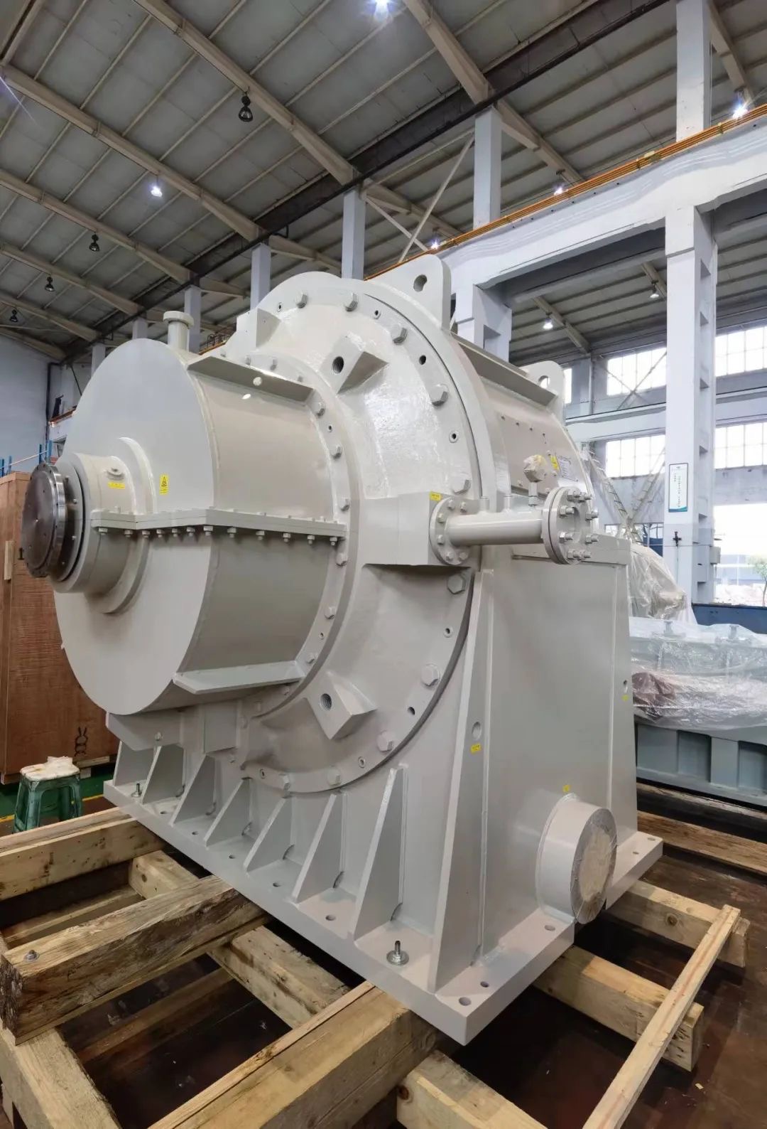 該項(xiàng)目是為某科研單位研發(fā)的大功率大速比NW型高速行星齒輪箱,齒輪箱額定功率8000kW,額定輸入轉(zhuǎn)速4000r/min,單級(jí)減速比20,齒輪線速度45m/s。該齒輪箱為我司自主開發(fā)的首臺(tái)NW型行星齒輪箱,解決了NW型行星機(jī)構(gòu)配齒設(shè)計(jì)、均載機(jī)構(gòu)設(shè)計(jì)、行星輪滑動(dòng)軸承設(shè)計(jì)、薄壁氮化內(nèi)齒圈制造、雙聯(lián)行星輪加工制造等關(guān)鍵技術(shù),為我司大功率大速比高速行星齒輪箱的開發(fā)奠定了基礎(chǔ)。