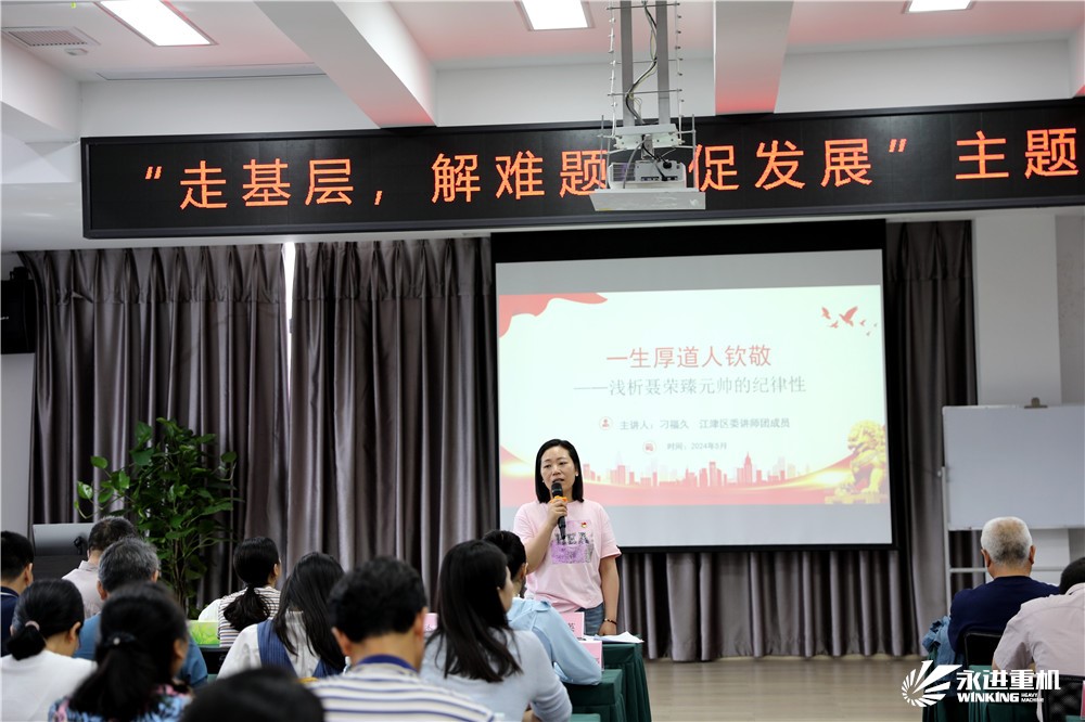 參觀后,在四樓會(huì)議室進(jìn)行了黨紀(jì)學(xué)習(xí)教育,學(xué)習(xí)了習(xí)近平總書記在新時(shí)代推動(dòng)西部大開發(fā)座談會(huì)上的重要講話 ,《中國(guó)共產(chǎn)黨紀(jì)律處分條例》,觀看了警示教育片。隨后,區(qū)關(guān)工委思想道德教育團(tuán)成員、白沙鎮(zhèn)二級(jí)巡視員刁福久以“一生厚道人欽佩-淺析聶榮臻元帥的紀(jì)律性”為題,為全體黨員干部上了一堂生動(dòng)的紀(jì)律黨課。他通過生動(dòng)的講述,配以大量史料佐證,真實(shí)地再現(xiàn)了聶榮臻元帥在法國(guó)勤工儉學(xué)、中國(guó)革命實(shí)踐、國(guó)防科技發(fā)展等不同時(shí)期如何踐行初心和使命,嚴(yán)守黨的紀(jì)律,遵守黨的規(guī)定,清正廉潔,嚴(yán)格家風(fēng)家訓(xùn),為黨和人民的事業(yè)奮斗一生的傳奇經(jīng)歷。宣講中,刁福久飽含深情,黨員同志們凝神靜聽,現(xiàn)場(chǎng)不時(shí)爆發(fā)出熱烈掌聲。